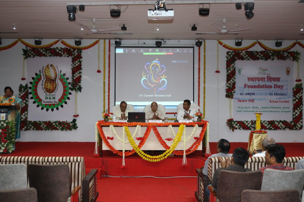 ICAR-Directorate of Groundnut Research (DGR), Junagadh celebrated its 44th Foundation Day on 1st October 2022 following its establishment on 01.10.1979 as 1st NRC (on Groundnut) in ICAR. This celebration was carried out in hybrid mode (physical mode at ICAR-DGR, Junagadh, and also webcasted through Zoom and YouTube). The programme was Chaired by Dr. A.R. Pathak, Hon. Former Vice Chancellor, JAU, Junagadh, while Dr. N. K. Gontia, Principal and Dean, CAET, and Former VC, JAU, Junagadh Co-chaired the event. Dr. T.R. Sharma, Hon’ble DDG (CS), ICAR was the Chief Guest, while Dr. Sanjeev Gupta, ADG (O & P) and Dr. D. K. Yadava, ADG (Seed), ICAR were the Guests of Honour for this great event.