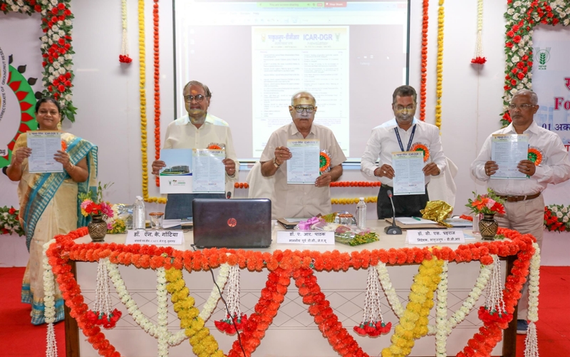 The Chairman and the dignitaries also released three ICAR-DGR Publications on the occasion. The function also witnessed conferment of Awards of Excellence (Foundation Day Awards) to its employees in their respective categories for their significant contributions in R & D activities by the Chairman and the Director. Five awardees include Dr. Ajay BC (Best scientist); Sh. Ranvir Singh (Best Technical officer); Sh. CG Makhwana (Best Administrative staff), Sh. C.G Moradiya (Best skilled support staff), and Smt Santha Venugopalan (Best Finance & Accounts staff). Three employees due to retirement in 2023 viz., Dr. S.D. Savaliya, CTO, Smt Santha Venugopalan, Assistant, and Sh. N.G. Vadher, SSS were also felicitated. Besides these, three progressive farmers adopting improved groundnut production technologies were also felicitated on this occasion.