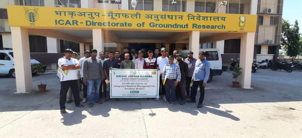 A 2-day training programme was organized for input dealers of Gir Somnath District from 11.05.2023 to 12.05.203. KVK, Kodinar, KVK Junagadh and ICAR-DGR have jointly organized this programme. Around 30 input dealers participated in the training programme. Kiran Reddy, Scientist, soil science acted as convener of the training programme. The training program was a part of certificate course on “Integrated nutrient management for fertilizer dealers” from 03-05-2023 to 17-05-2023. Three Theory lectures and two practical’s were organized at ICAR-DGR. Dr. Rinku Dey, Principal scientist, Microbiology delivered lecture on Importance of Bio-inoculants such as Rhizobium, Azotobacter, Phosphate Solubilizers, Azospirillum and Endophytes in groundnut. Dr. KK Reddy, Scientist, soil science, explained in brief about the Indian Soils and Methods of application of fertilizers, manures and bio-fertilizers in groundnut. Dr. CS Praharaj, Principal Scientist, Agronomy, delivered a talk on Conservation agriculture, soil health, and water conservation. Dr. KK Reddy gave a practical lecture on qualitative testing of fertilizers for impurities. Dr. Aaradhna Chilwal, Scientist, Agronomy gave the practical session on Determination of lime and gypsum requirement for soil application in acidic and alkaline soils. Dr. Sushmitha S, Scientist, Plant Physiology gave the lecture on micronutrient deficiencies in groundnut and their management. Overall the program was a grand success