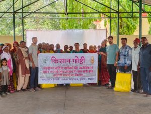 An Awareness campaign cum Kisan Gosthi on ‘Balanced use of fertilizers’ and ‘Region Specific Agroforestry’ was organised by inviting about 150 farmers and other stakeholders of ICAR-DGR adopted villages in the forenoon on 21-06-2022. All the scientists and technical personnel of the Institute also attended in this campaign. On this occasion Dr. CS Praharaj, Director, ICAR-DGR, Junagadh delivered a lecture on ‘Balanced use of fertilizers’ to sensitize the farmers about the need for judicious and balanced use of recommended doses of fertilizers including biofertilizers/biopesticides and other inputs for enhancing productivity of groundnut and other field crops and also to improve nutritional quality of the produce. Shri P. V. Zala, CTO of ICAR-DGR addressed the participants and highlighted the importance of ‘Region Specific Agroforestry’ for generation of additional farm income and also talked about the importance of neutralizing the impact of climate change. On this great occasion, tarpaulin sheets were also distributed to all the participating farmers registered under SCSP programme. Later, tree plantation was also carried out in the evening at ICAR-DGR Campus, Junagadh and its regional centres at Anantapur and Bikaner.