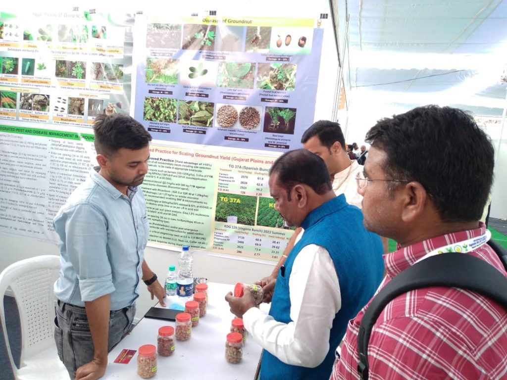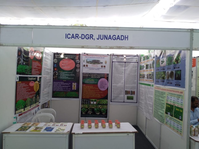 DGR has participated in the International Conference on Vegetable Oils (ICVO) exhibition held at IIOR, Hyderabad and showcased the activities with the posters and literature, also displayed the ruling groundnut varieties. The exhibition was held for three days 17-19 January 2023, during which stakeholders like farmers, researchers, industry persons and private sector people (chemicals and fertilizers) have visited the stall and interacted. During the interaction many stakeholders showed interest on the new groundnut varieties Girnar 4 and 5 and new technologies that can reduce the manpower and use of chemicals in the field.