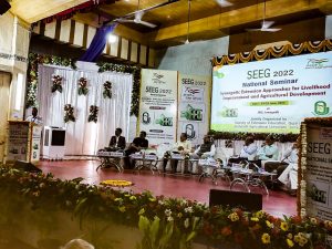 Guest of Honours, Dr. KB Kathiria, hon’ble VC, AAU Anand and Dr ZP Patel, Honble VC NAU Navsari also addressed on the occasion. Earlier Dr HM Gajipara, DEE, JAU welcomed the delegates. The inaugural function was also accompanied with release of publications, felicitation to Guest of Honours and Donors; and distribution of awards on various categories. The inaugural function was concluded with a vote of thanks by Dr NB Jadav, SEEG Organizing Secretary 2022.